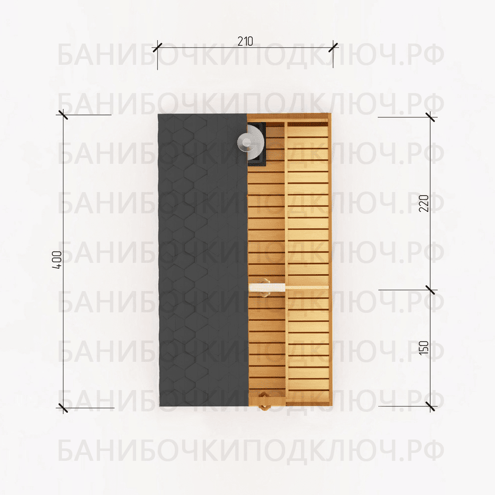 парилка - 220 см, предбанник - 150 см
